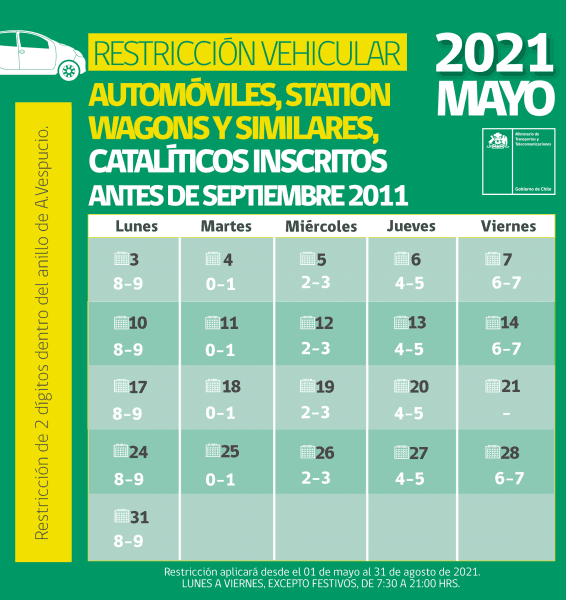 Afectando en su primera jornada a placas patentes terminadas en los dígitos 1, 3, 5, 7 y 9, desde las 08.00 horas de este sábado 6 de febrero comenzará a regir una restricción vehicular que se aplicará los fines de semana, en las zonas urbanas de las comunas de la serena y. Todos los días, para aquellos conductores que no tengan carta de excepción. Este martes 18 de mayo continuará la restricción vehicular, la cual ha estipulado un calendario para el mes de mayo con el cual puedes ver si tu automóvil está autorizado para circular por las calles. Restricción vehicular sanitaria en costa rica del 19 al 31 de mayo. El pasado lunes 14 de septiembre entró en vigencia esta resolución con su plan de restricción vehicular hoy circula, que regula el tránsito de vehículos particulares.